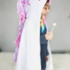 Parfait pour ceux qui veulent s’habiller comme leur créature de conte de fées préférée, cette cape présente une crinière multicolore brillante avec une corne d’argent. Une fermeture Velcro au cou assure une dégagement facile sur et hors de s’habiller. Le tissu moelleux blanc est doux au toucher et est facilement lavable à la machine au cas où votre petit tout-petit emmènera sa magie de licorne à l’extérieur.